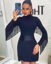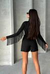 Kadın Uzun Kollu Balıkçı Yaka Püsküllü Kuşaklı Ithal Krep Tulum