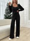 Kadın Uzun Kollu Balon Omuz Ve Kare Yaka Detay Bluz Ve Bol Baça Pantolon Ikili Takım