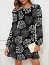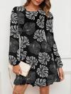 Kadın Uzun Kollu Bisiklet Yaka Desenli Kısa Krep Elbise