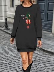 Kadın Uzun Kollu Bisiklet Yaka Desenli Kısa Viskon Iki Iplik Elbise