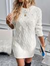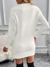 Kadın Uzun Kollu Bisiklet Yaka Desenli Triko Elbise