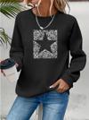 Kadın Uzun Kollu Bisiklet Yaka Desenli Viskon Iki Iplik Bluz