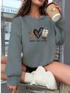 Kadın Uzun Kollu Bisiklet Yaka Kalp Desenli Viskon Iki Iplik Bluz