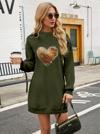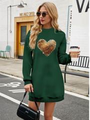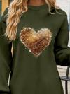Kadın Uzun Kollu Bisiklet Yaka Kalp Desenli Viskon Iki Iplik Bluz