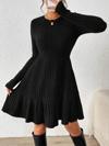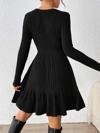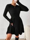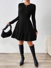 Kadın Uzun Kollu Bisiklet Yaka Kemersiz Eteği Pileli şardonlu Kaşkorse Elbise
