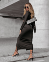 Martcini Kadın Uzun Kollu Bisiklet Yaka Kısa Krop Dalgıç Bluz Ile önden Yırtmaçlı Uzun Etek Ikili Takım