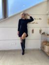 Kadın Uzun Kollu Bisiklet Yaka önden Volanlı Ithal Krep Elbise