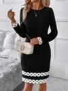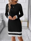 Kadın Uzun Kollu Bisiklet Yaka şerit Detaylı Puantiyeli Kısa Ithal Krep Elbise