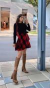 Kadın Uzun Kollu Bisiklet Yaka üst Viskon Alt Ekose Kısa Elbise