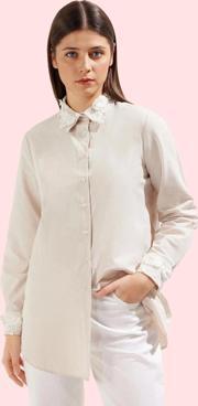Yüksek kaliteli pamuk ve polyester karışımı, nefes alabilirliği ve dayanıklılığı bir araya getiriyor. Dantel detaylı yaka ve manşetler, gömleğe zarif bir dokunuş katarken, düz deseni her türlü kombinle uyum sağlıyor. Regular kalıbıyla rahat bir kullanım sunarken, uzun kolları dört mevsim kullanım imkanı veriyor. Doğal ve yumuşak dokusuyla gün boyu konfor hissi yaşatır. Bej renginin nötr tonu, her kıyafetinizle kolayca uyum sağlar.