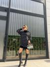 Kadın Uzun Kollu Degaje Yaka çizgili Sonya Iplik Mini Boy Triko Elbise (kemersiz)