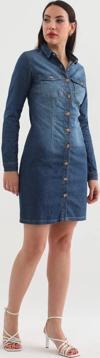 İster özel günlerde ister günlük kombinlerinizde tercih edebileceğiniz bu denim elbise, farklı aksesuarlarla tamamlanarak her ortama uyum sağlayabilir.