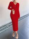 Kadın Uzun Kollu Fermuar Detay Fitilli Kaşkorse Kumaş Maxi Boy Elbise