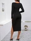 Kadın Uzun Kollu Göğüs Ve Göbek Dekolte Detay Sandy Midi Boy Elbise