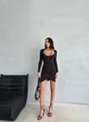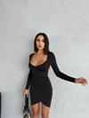 Kadın Uzun Kollu Göğüs Ve Sırt Dekolteli Kruvaze Etek Detay Fırsat ürün Mini Elbise