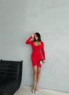 MDB Omuzu Ip Askılı Şortlu Elbise  Kırmızı - Image 1