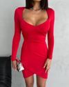 Kadın Uzun Kollu Göğüs Ve Sırt Dekolteli Kruvaze Etek Detay Fırsat ürün Mini Elbise