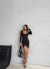Kadın Uzun Kollu Göğüs Ve Sırt Dekolteli Kruvaze Etek Detay Fırsat ürün Mini Elbise