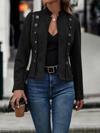 Kadın Uzun Kollu Hakim Yaka Yanlardan Düğmeli Kısa Süet Ceket