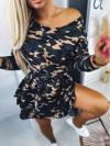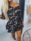Kadın Uzun Kollu Kamuflaj Desen Düşük Omuz Beli Lastikli Elbise