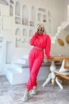 Asil Acar Home Kadın Uzun Kollu Kapüşonlu Beli Lastik Detay Sweat Ve Yüksek Bel Bileği Lastikli Pantolon üç üplik Kumaş Ikili Takım