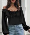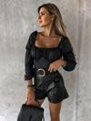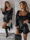 Kadın Uzun Kollu Kare Yaka Göğüs Büzgü Detay Sandy Bluz