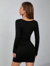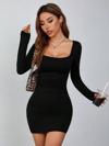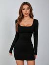 Kadın Uzun Kollu Kare Yaka Iç Gösterrmeyen Mini Elbise