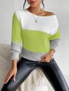 Kadın Uzun Kollu Kayık Yaka çok Renkli Triko Bluz
