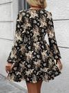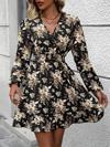 Kadın Uzun Kollu Kruvaze Yaka Beli Gipeli çiçek Desenli Kısa Dalgıç Elbise