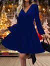 Kadın Uzun Kollu Kruvaze Yaka Beli Lastikli Kiloş Kadife Elbise