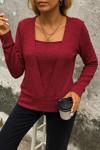 Kadın Uzun Kollu Kruvaze Yaka Kol Ve Etek Ucu Manşet Detay Yumoş Bluz