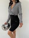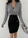 Kadın Uzun Kollu Kruvaze Yaka üst Kazayağı Desen Düğme Detaylı Dalgıç Elbise