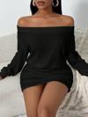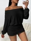 Kadın Uzun Kollu Omuzlardan Açık Yanlardan Büzgülü şardonlu Kaşkorse Elbise