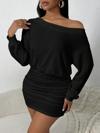 Kadın Uzun Kollu Omuzlardan Açık Yanlardan Büzgülü şardonlu Kaşkorse Elbise
