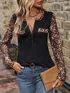 Kadın Uzun Kollu önden Fermuarlı Cepli Leopar Detaylı Viskon
