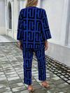 Baskılı Önü Bağlamalı Yelekli Takım - İndigo - Image 1