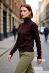 Ürün Özellikleri: Regular kalıp, yünlü materyal, düz desen, balıkçı yaka, standart kol, triko kumaş, kahverengi renk, baskısız tasarım, cepsiz.