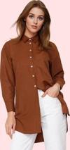 Rahatlığı ve şıklığı bir arada arayan kadınlar için özel olarak tasarlanan bu uzun kollu gömlek, gardrobunuzun vazgeçilmez parçalarından biri olacak. %51 pamuk ve %49 polyester karışımı kumaş, nefes alabilirliği ve yumuşak dokusuyla gün boyu konfor sunarken, relaxed kalıbı ile vücudunuzu saran şık bir görünüm elde edersiniz. Düğmeli ön kapatma, düşük kol detayları ve gömlek yakası ile klasik şıklığın modern yorumunu sunan bu gömlek, her mevsim kullanabileceğiniz çok yönlü bir parça. Kahverengi rengi ile zamansız bir şıklık yakalayacaksınız. İş hayatından günlük kombinlere kadar her ortamda rahatlıkla kullanabilirsiniz. Bu gömlek, 38-46 beden aralığında mevcut olup, farklı vücut tiplerine uyum sağlayan relaxed kalıbı sayesinde her bedende kusursuz duracaktır. Jean pantolonlarla, eteklerle veya şık pantolonlarla kolaylıkla kombinleyebilir, farklı aksesuarlar ile tarzınızı kişiselleştirebilirsiniz.