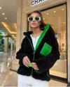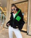 Kadın Uzun Kollu Renkli Cep Ve Fermuar Detay Peluş Mont