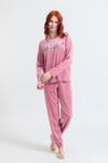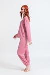 İki parçadan oluşan set, sweatshirt ve pantolon olmak üzere tam bir pijama takımını oluşturur