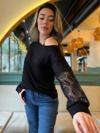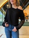 Kadın Uzun Kollu Tek Omuzu Açık Askılı Toka Ve Dantel Detay Viskon Iki Iplik Bluz