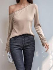 Kadın Uzun Kollu Tek Omuzu Açık Dantelli Burgu Bluz