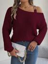 Kadın Uzun Kollu Tek Omuzu Açık Tokalı Triko Bluz