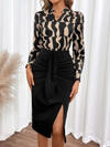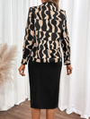 Kadın Uzun Kollu V Hakim Yakalı Desenli Dalgıç Bluz Ve önden Büzgülü Krep Ikili Takım