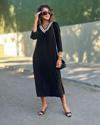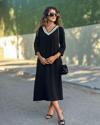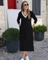 Kadın Uzun Kollu V şerit Yakalı Viskon Iki Iplik Elbise
