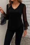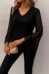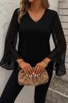 Kadın Uzun Kollu V Yakalı Kolları Ispanyol Detayı Sandy Bluz