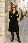 Kadın Uzun Kollu V Yakalı Salaş Midi Iki Iplik Elbise
