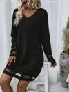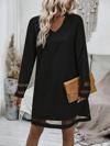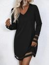 Kadın Uzun Kollu V Yakalı şeritli Tül Detaylı Ithal Krep Elbise