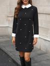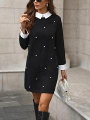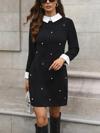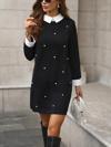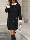 Kadın Uzun Kollu Yakalı Incili Ithal Krep Elbise