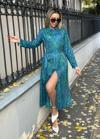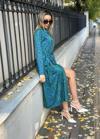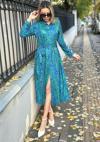 Kadın Uzun Kollu Yakalı önden Düğmeli Beli Kuşaklı Uzun Süprem Elbise